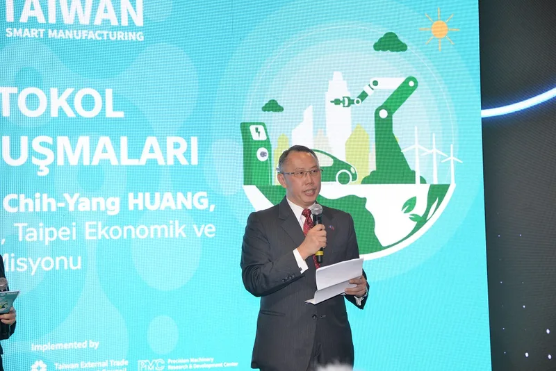 Tayvan standının açılışında konuşanTayvan Ekonomik ve Kültür Misyonu Temsilcisi Volkan Chih-YangHuang,“Tayvan, Türkiye'nin elektrikli araçlar, yeşil enerji, savunma ve daha birçok sektördeki gelişimine güçlü bir destek sağlayabilir. İki tarafın da endüstriyel gelişimini tamamlayıcı avantajları sayesinde Türkiye'nin tüm bölgede üretim merkezi olma yolunu açmasını sağlayacak en iyi akıllı ortağın Tayvan olacağına inanıyoruz.” dedi.